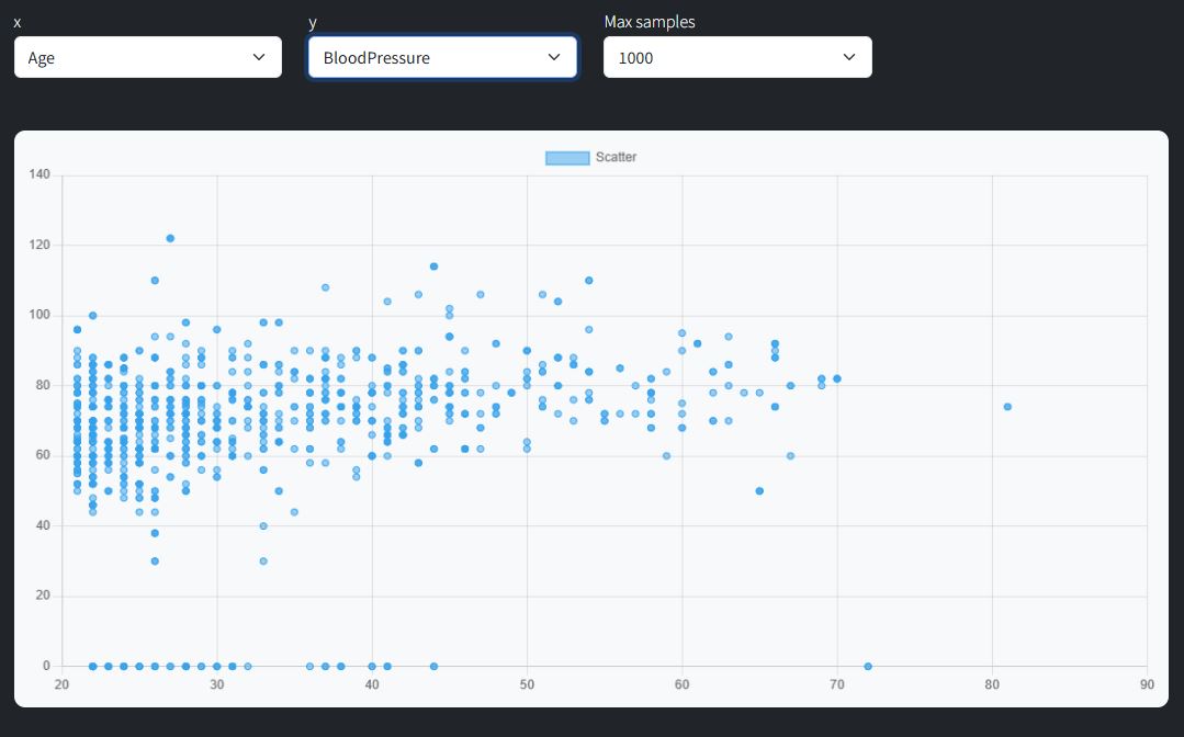 Vous pourrez voir un graphique x/y pour deux colonnes de votre choix. Ce graphique vous permettra de voir la relation entre ces deux colonnes.